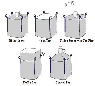 BIG BAGS are used to pack a wide range of goods. For maximum efficiency of bag filling, various solutions are used for the bag top construction : filling spout, open top, filling spout with top flap, duffle top/top skirt and conical top.
