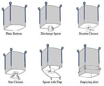 BIG BAGS (FIBC BAGS) are used to pack a wide range of goods. For maximum efficiency of bag emptying, various solutions are used for the bag bottom construction: plain bottom, discharge spout, rosetta closure, star closure, spout with flap, emptying skirt.